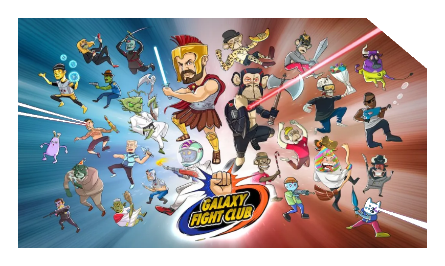 Galaxy Fight Club is a cross-ip, cross-platform pvp fighting game where holders of different NFT collections can battle and earn rewards through play-to-earn mechanics.